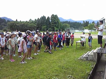 全員元気に集合!8時40分から長沢小学校で朝の会を行いました。朝の挨拶、1日のスケジュール確認、各班代表の今日の抱負発表がありました。