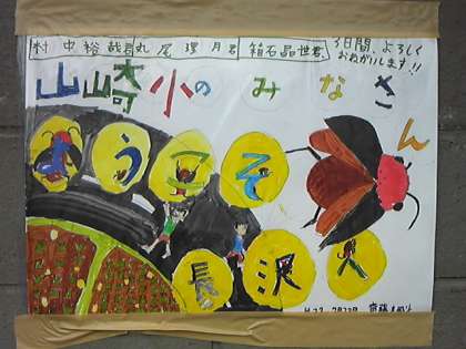 長沢駅から眺めた景色です。あちらこちらのお家に歓迎のポスターが貼られています。感動です!