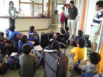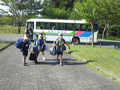 全員で「さようなら」のあいさつを交わし、それぞれのホームステイ先へ、男子Bグループは引率教員と体験実習館へ向かいました。 長沢交流2日目の夜を過ごします。(写真は体験実習に着いたところです。))