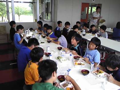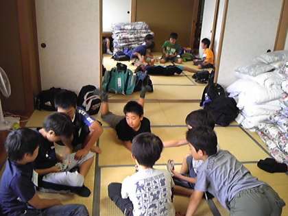 おはようございます。長沢交流学習も3日目の朝を迎えました。体験実習館グループの様子です。朝、部屋でくつろぐ様子・朝食の様子です。これからスクールバスで長沢小学校に向かいます。