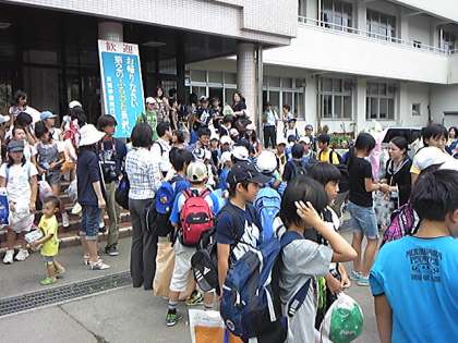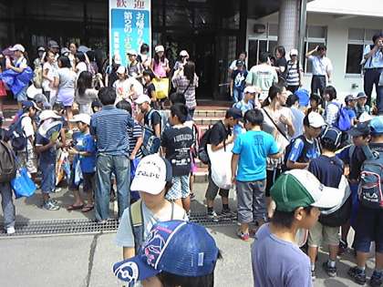 歓送式が終わり、玄関に移動しました。お世話になったホームステイの友達や家族の方々と記念撮影をしたり、秋の交流学習での再会を誓い合ったり、一層絆を深め合う時間となりました。涙ぐむ姿も印象的でした。