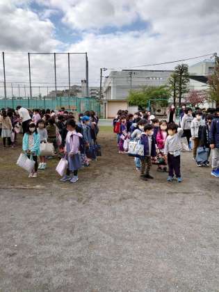 担任2人で校庭に向かうと、このように待っている子どもたちが、、、