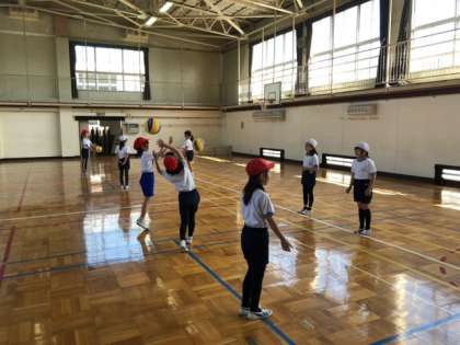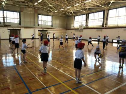 後半は、ワンバウンドで相手にボールが届くように投げ合いました!