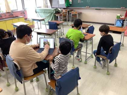 写真に撮った花や虫などを見ました。上手に操作して自分たちが撮った写真を確認していました。