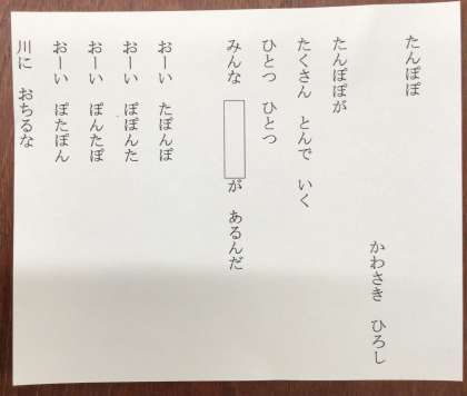 国語のグループ学習で、「たんぽぽ」の詩に取り組みました。子どもたちに詩の前半だけ見せて、空欄の中にどんな言葉が入るか考える時間を設けました。