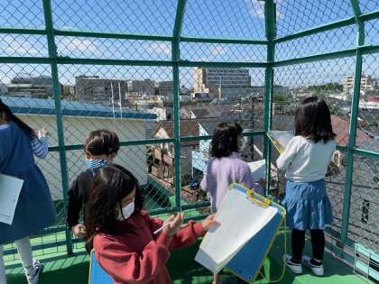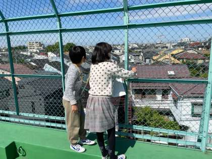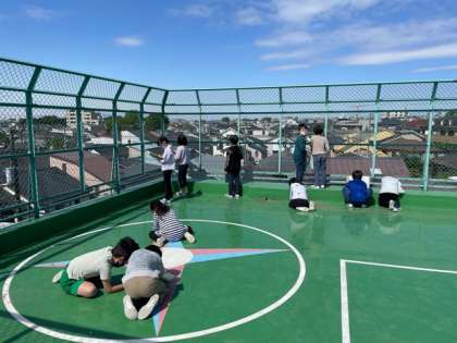 晴天の下、今日は1組のみんなと、屋上から何が見えるか調査しましたヨ!!