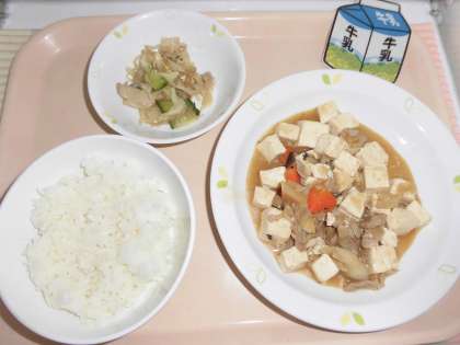 今日の「家常豆腐(ジャージャンドウフ)」は、家にあるもので作るという意味を持つ、中国の家庭料理です。麻婆豆腐よりも辛みをおさえてあります。ごはんがすすむ味付けになっているので、よく噛んで残さずしっかり食べましょう。