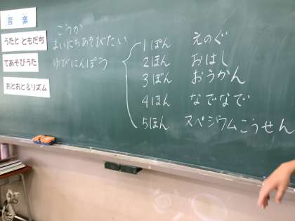 音楽の身体遊び歌で「ゆびにんぽう」をしました。