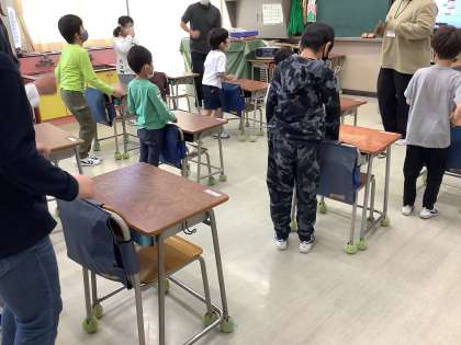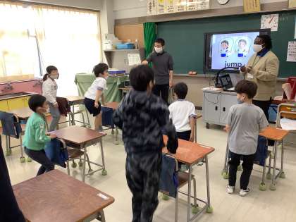今日の外国語活動は、動きの言葉の英単語を覚えました。