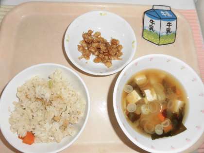今日は、旬のたけのこを使った「たけのこごはん」です。今日は初夏を思わせるような気候ですが、子どもたちに給食の食材で「春」を感じとってもらえたら嬉しいです。