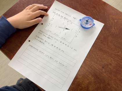 方位磁針の使い方や見方を知り、プリントにまとめました。