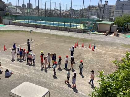 校庭にできた道路をしっかり歩く後ろ姿が、とってもかっこよかったです!