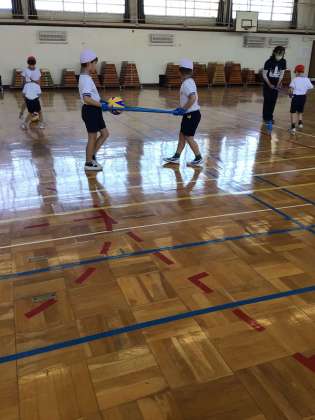 スティックを横にして、投げて両手で掴んだり、縦にして