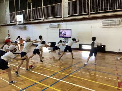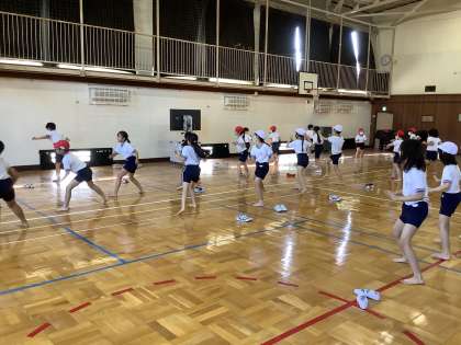 5年生と合同で練習する前に、4年生だけで基本的な踊り方について練習してきました。