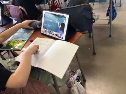 ノートをとるスピードなども、OKサインを出しながら意思疎通をして楽しく学習を進めていました。