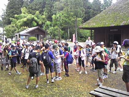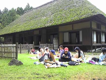 予定より早く、日光杉並木公園に到着しました。雨は上がっています。グループで仲良くお弁当を食べています。