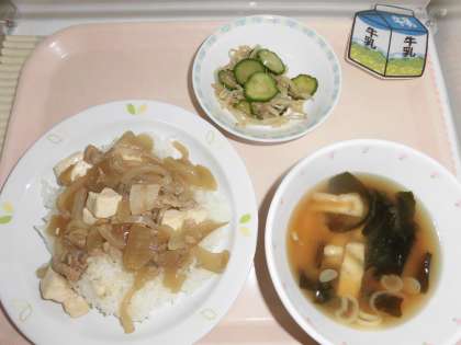 今日12日は、10(とう)と2(ふ)で「豆腐の日」です。みんなで豆腐入りの「豚丼」を食べます。今週は、毎日の気温差が激しいですが、しっかり食べて乗り切りましょう。