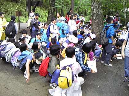 戦場ガ原オリエンテーリングへの出発です。お弁当を食べエネルギーを補給。行動班で、間隔をあけスタートします。
