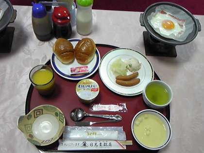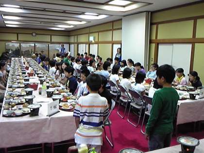食事係の「いただきます」のあいさつで朝食が始まりました。