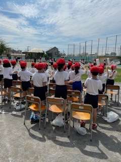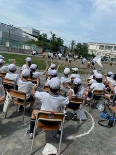 声を出す代わりに、ビーズ入りのペットボトルで音を鳴らして盛り上げます。