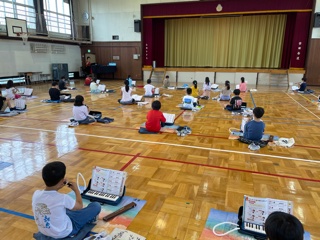 体育館で充分距離を取って、感染対策をしながらですが、先生の話を一生懸命聞いて音を出していましたヨ♪