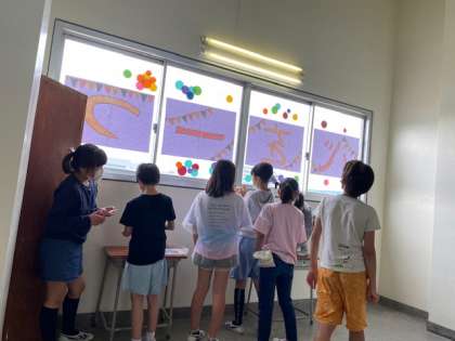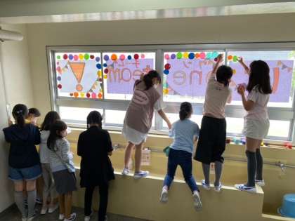 スポーツ祭りのスローガンを拝見されたと思いますが、素敵なスローガンをより素敵に飾ってくれた5年生です。