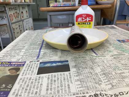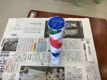 レインスティックの中に巻いた針金と真っ直ぐな針金を入れました。
