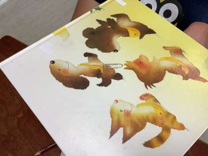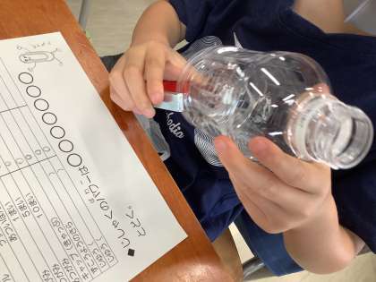 タオルや粘土板、絵本などを使って磁石の力が離れていても届くことがわかりました。