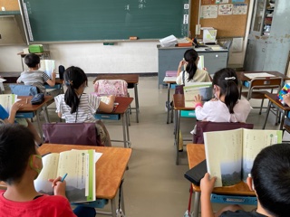 工夫ポイントが決まったら、互いに音読を聞き合って良いところを伝え合います。