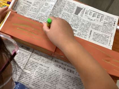 次に牛乳パックの側面に木の部分になる画用紙を貼りました。