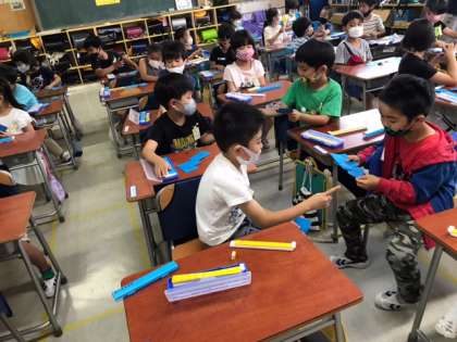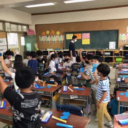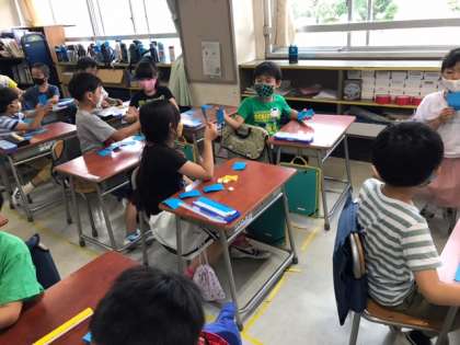 他にも、算数ブロックを使いながら足し算を作ったり、子どもたちの手作りの数字カードを使ったゲームをしたりしています。