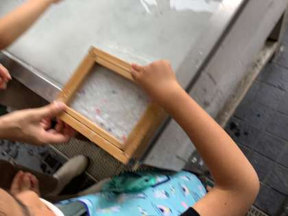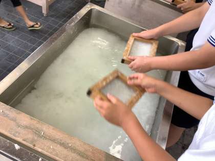 楽かった思い出を伝えるために紙すきでハガキを漉き、