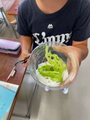 キャベツの葉っぱの上に何やらウネウネと動くものが。
