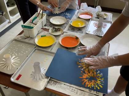 【仲よし学級】スタンプを使って(図工)