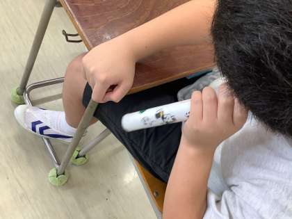 「あめふりくまのこ」の曲に合わせて音を出して楽しみました。