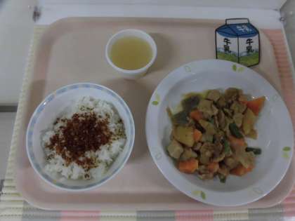 今週で、1学期の給食が終わります。残すところ、あと5回ですが、よく噛んで残さず食べましょう。暑い日が続きますが、熱中症にならないよう、牛乳などでしっかり水分補給をしましょう。