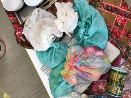 高学年では、ガーゼに包んだペットボトルの蓋や割り箸、プラモデルの部品を揉むと出る音を耳を澄ませて聴いていました。