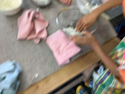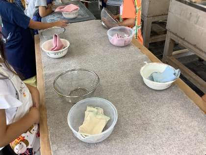 1年生との紙すき学習に参加しました。ざるを使ってお皿作りをしました。