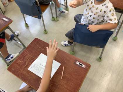 ○×ゲームでは、友達とペアになり、ジャンケンをしながら○×ゲームを楽しみました。