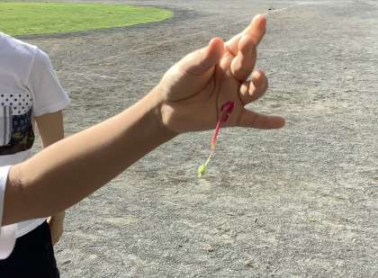 種を見たり5時間目にやる「パラシュート」遊びを少し体験したりしました。