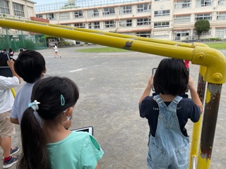 紙漉き学習で作ったフォトフレームに入れる写真を撮っています。