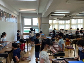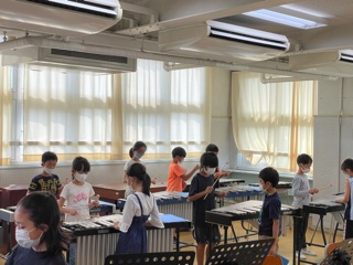 まずはメロディを覚えて木琴や鉄琴を叩いて練習します。