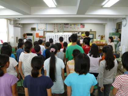 9月7日(水)3・4校時、6年生は、劇団四季の方々を講師にお招きし「美しい日本語の話し方教室」で学習をしました。日本語の話し言葉をきちんと話すためには・・・という内容で、日本語を発音するときには母音「あ・い・う・え・お」をきちんと話すことが大切であることなどたくさんのことを学ぶ機会となりました。楽しく学習したあとの話し合いでは、日本語についての発見があったこと、日本語の大切さについて学べたことなど、心に残った学習感想が出されていました。