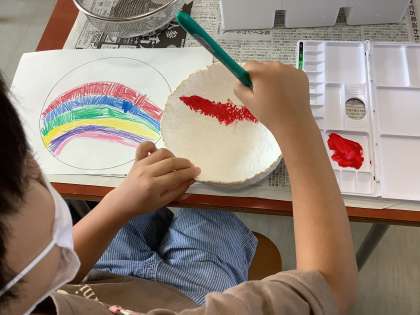 次に、絵の具を使って模様や絵を描き、完成させました。