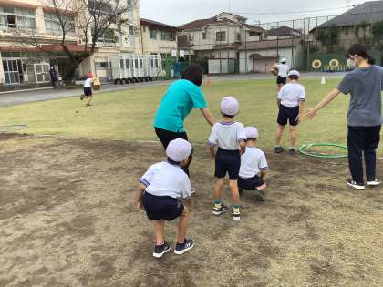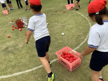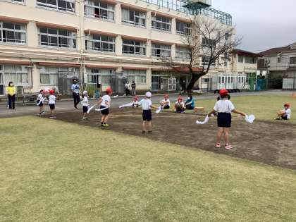 縄跳び発表会、仲よし宅急便、玉入れ、を行いました。