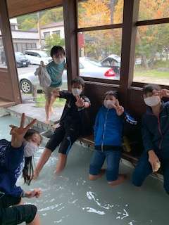 写真は足湯組ですが、源泉散策コースでは、猿と鹿に出会えたそうです。
