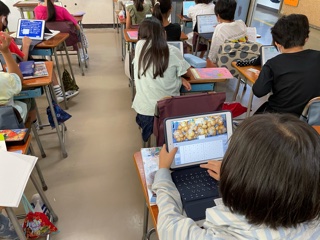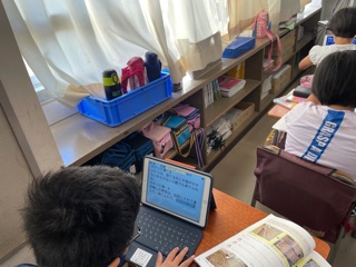 社会で学習した農家の仕事について、調べて分かった農家の工夫をロイロノートを使ってまとめています。