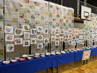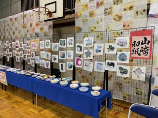 会場の体育館には、3年生が紙漉き学習で作ったフォトフレームがずらり。