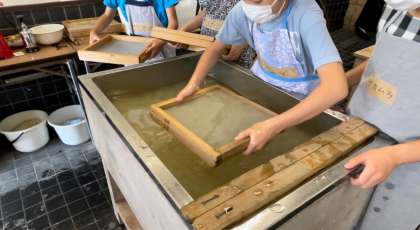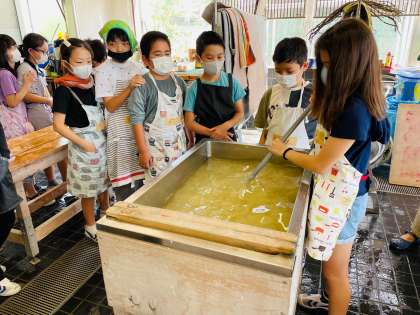 楮を「紙料」と呼ばれる和紙の材料に変身させたら、いよいよ山崎和紙を漉き、伝承者になります!