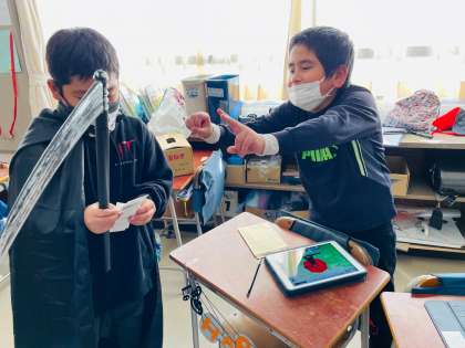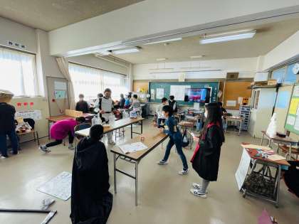 スライドショーを作成して流す、タブレットをつかってくじをするなど、一人一台端末を駆使してお店をやっている子たちもいて、感心しました。